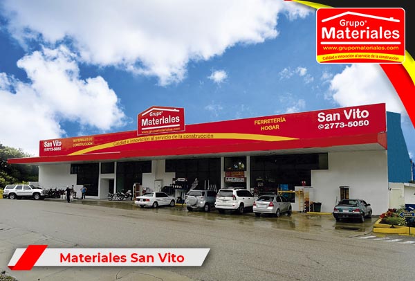 Materiales San Vito abrió sus puertas el 1º de noviembre de 1998 siendo la primera ferretería de Grupo Materiales. Estamos ubicados contiguo a la Estación de Servicio Río Java en San Vito de Coto Brus. En San Vito también está situada la Oficina Central y Corporativa de nuestro grupo.
